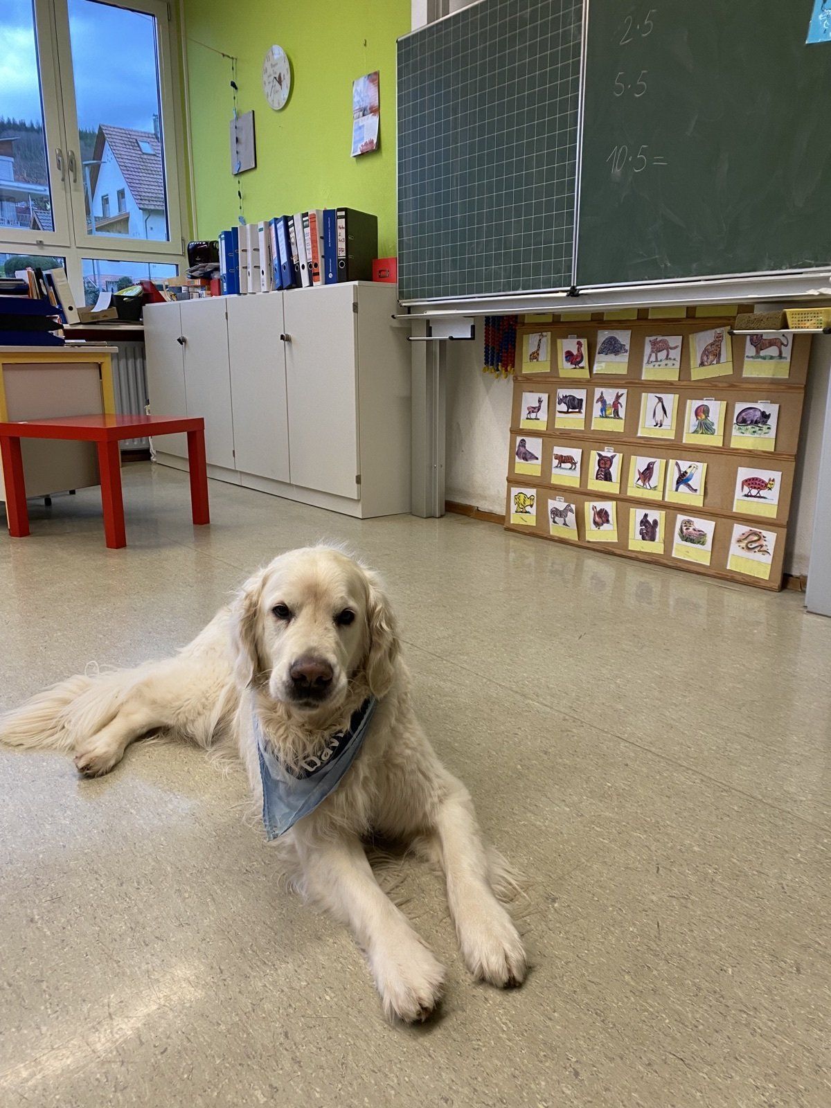 Big, gentle eyes, a friendly nature and a calmness that knows no bounds: school dog Davis is a friendly giant who charms everyone with his calm nature. The Golden Retriever has been working at the Johann-Peter-Hebel School for 7 years and supports class teacher Petra Zeitz in her work three to four days a week.